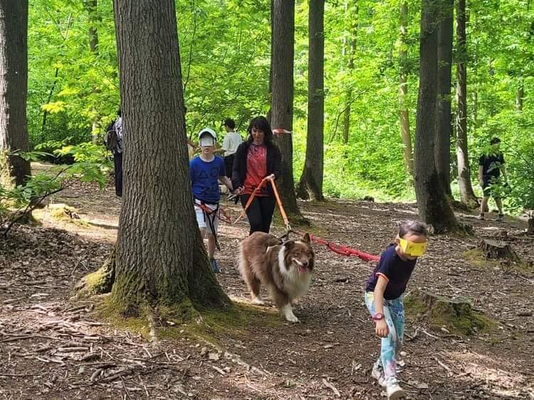 Les jeunes participants (Siam et Ufolep) ont découvert avec joie cette activité tout en apprenant à connaître leur coéquipier canin. Pour beaucoup, il s’agissait d’une première rencontre avec un chien. Un jeu de recherche visuelle de balises accrochées aux arbres nous a tous réunis au milieu de la forêt. Une sensibilisation a été ajoutée pour les participants de l’association Ufolep qui portaient des lunettes de simulation pendant cette situation de jeu. A la fin de la matinée, les visages étaient tout sourire et la demande qui a été le plus partagée était “on recommence quand ?”