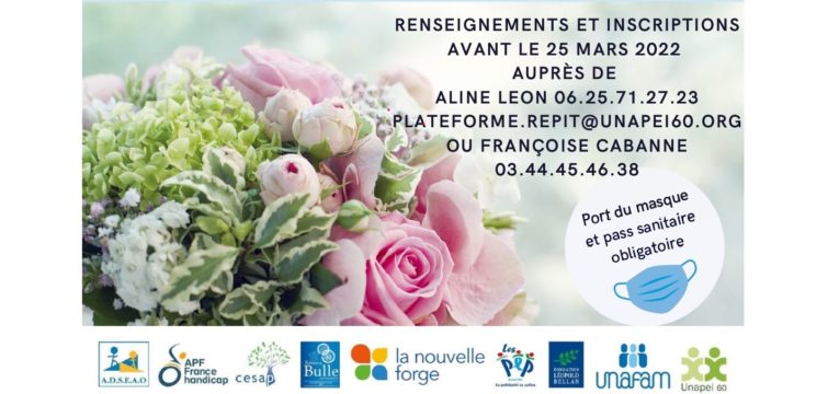L'UNAPEI Territoriale et la Plateforme Répit Handicap de Beauvais et sa région organisent un atelier d'art floral le 09 Avril 2022 de 14h00 à 16h30 pour les aidants familiaux, leurs accompagnants et leurs enfants.