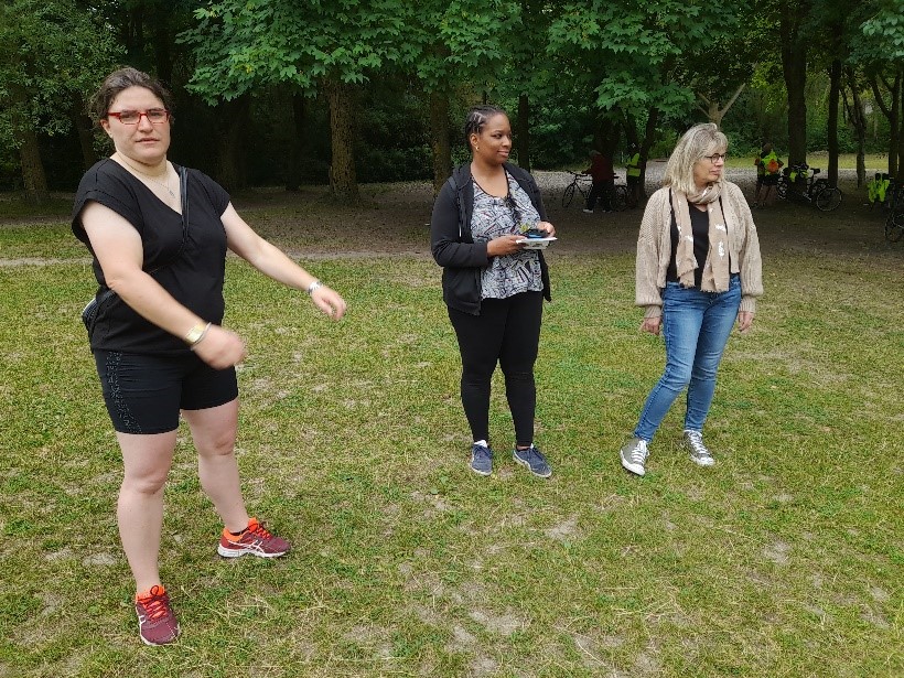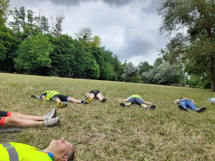 Activité Yoga du rire à la base de loisirs de Cergy. Moment très drôle, libératoire et finalement apaisant