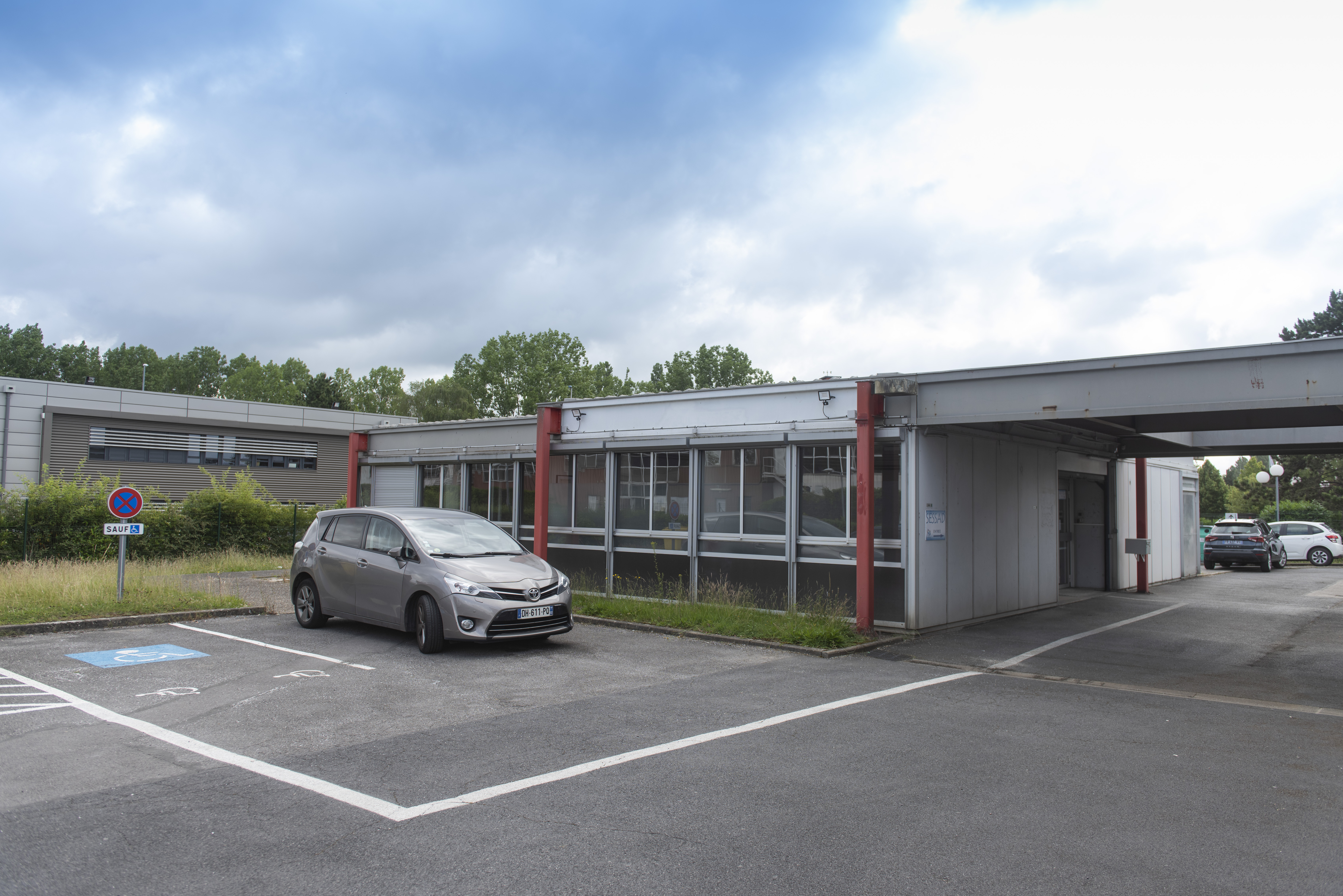 Le bâtiment est situé au fond de la cour, derrière “France Pare-Brise”.